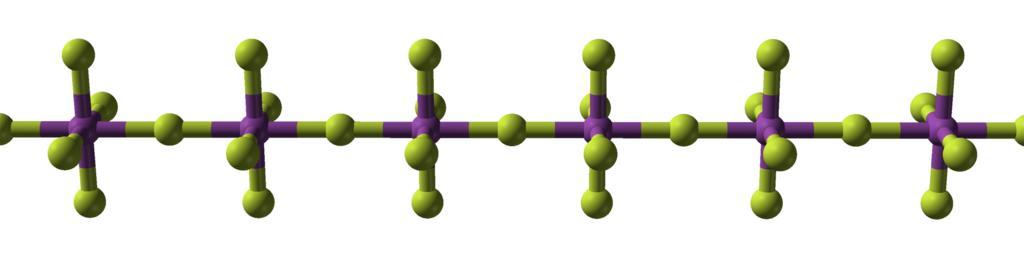 | Keywords: Bismuth-pentafluoride-chain-from-xtal-1971-3D-balls.png Ball-and-stick model of part of the crystal structure bismuth pentafluoride BiF<sub>5</sub> X-ray crystallographic data from http //dx doi org/10 1002/zaac 19713840204 Z anorg allg Chem 1971 384 111-114 Model constructed in http //www crystalmaker com/ CrystalMaker 8 1 Image generated in http //accelrys com/products/discovery-studio/visualization/discovery-studio-visualizer html Accelrys DS Visualizer Own 2009-06-04 Ben Mills Benjah-bmm27 Images by Ben Mills Ball-and-stick models Crystal structures of bismuth pentafluoride |