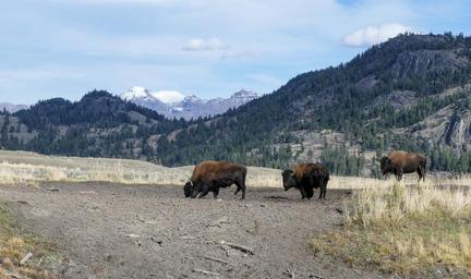 | Keywords: bison mammals outdoor grassland landscape field animal hill Bison in Lamar Valley with Cutoff Peak in background; Diane Renkin; October 2016; Catalog #20810d; Original #P1010676 Bison in Lamar Valley with Cutoff Peak in background; Diane Renkin; October 2016; Catalog #20810d; Original #P1010676 |