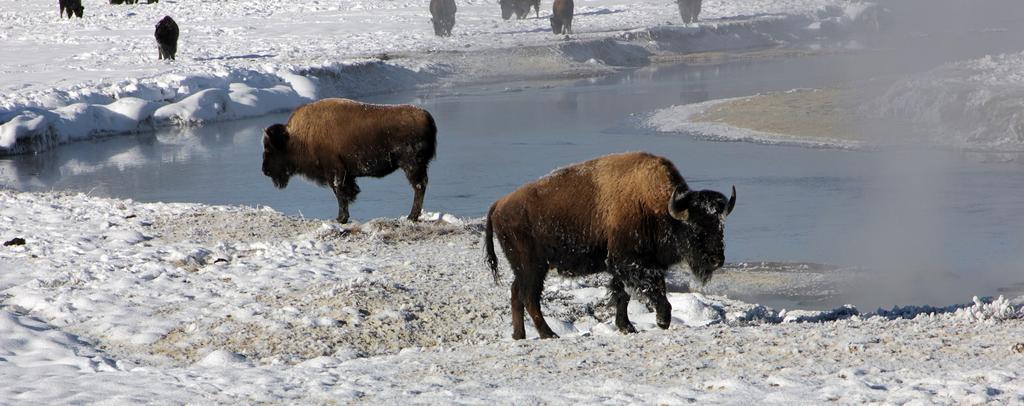 Keywords: bison buffalo winter wildlife nature steam hot springs yellowstone national park wyoming snow water usa