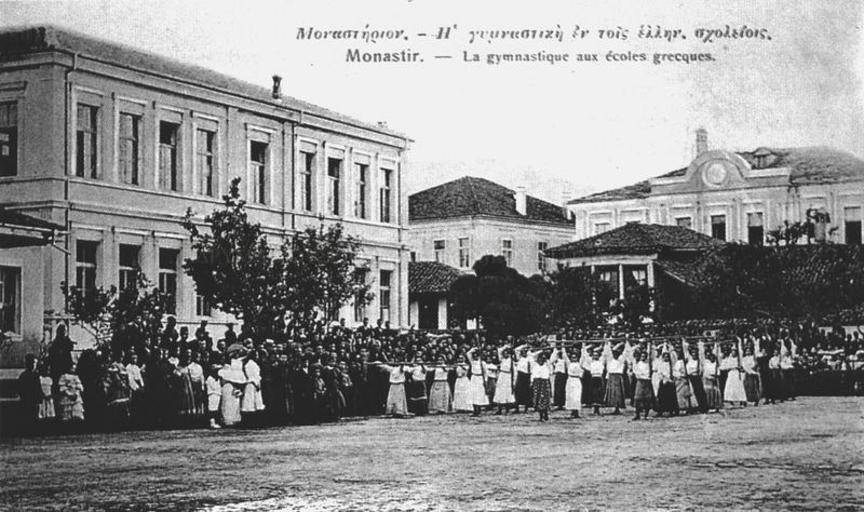 | Keywords: Bitola Greek School Monastiri.JPG en A Greek school of Monastir modern Bitola Macedonia early 20th century fr Monastir -La gymnastique aux ecoles grecques el οναστηρίον - Η γυμναστική εν τοις ελλην σχολείοις Συλλογική αναμνηστική φωτογραφία η ο οία α εικονίζει τις γυμναστικές ε ιδείξεις του Ελληνικού σχολείου οναστηρίου στις αρχές του εικοστού αιώνα http //www imma edu gr/imma/dbs/Artifacts/index html lq CE A0 CE 93 CE 94 CE 9C start 593 show 1 Author early 20th Century Anonymous-EU Ottoman Greeks Historical images of Bitola Schools in Bitola |