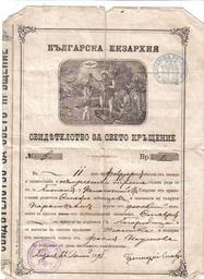| Keywords: Bitolya Bulgarian Municipality Birth Certificate 1883.jpg К ъщелно свидетелство от Битолската бълга ска община с подписа на поп Став е scanned 1883-02-02 Bulgarian Exarchate PD-old Bulgarian Exarchate History of Bitola Bitolya Bulgarian Municipality Diocese of Prespa and Pelagonia Baptism certificates of Bulgaria |
