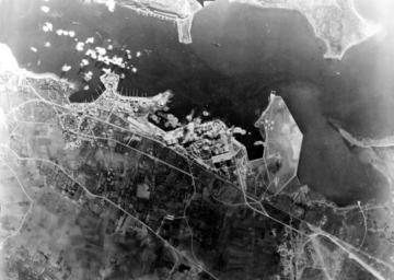 | Keywords: Bizerta under attack Jan1943.jpg Aerial view of Bizerta Binzart Bizerte in Tunisia under attack by U S Army Air Force Boeing B-17 Flying Fortress bombers circa January 1943 Note the bombs exploding among the warehouses and ships LOC-image fsa 8e00846 1943-01 USAAF frame removed 37 24693 9 82873 PD-USGov Bombing during World War II World War II aerial photographs of Tunisia Port of Bizerte 1943 in Tunisia | ||||