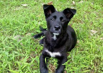 Keywords: black dog animal grassland the eye