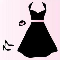Keywords: dress black frock party dress evening wear shoes bag purse accessories pink background clip-art scrapbooking
