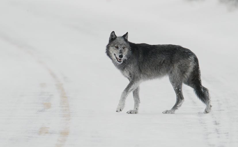 | Keywords: outdoor Black and grey wolf (female from Druid pack,"Half Black") walking in road near Lamar River bridge; Jim Peaco; December 31, 2003; Catalog #18017d; Original #B66G2785 Black and grey wolf (female from Druid pack,"Half Black") walking in road near Lamar River bridge; Jim Peaco; December 31, 2003; Catalog #18017d; Original #B66G2785 | ||||