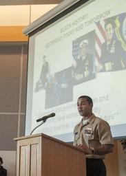 | Keywords: Black History Month celebration 140213-N-MM360-025.jpg en U S Navy Fire Controlman 1st Class Demetrius Allen speaks to Sailors during an African American History Month celebration in the Grand Vista Ballroom at Naval Station Everett NSE in Everett Wash Feb 13 2014 The event organized by NSE's multi-cultural committee was meant to commemorate the impact that African Americans have made on the United States and the Navy U S Navy photo by Mass Communication Specialist 2nd Class Jeffry A Willadsen/Released 2014-02-13 Jeffry Willadsen https //www dvidshub net/image/1494647 140213-N-MM360-025 2014-08-09 08 04 NAVAL STATION EVERETT WA US PD-USGov-Military-Navy Naval Station Everett Black History Month Images from DoD uploaded by Fæ |