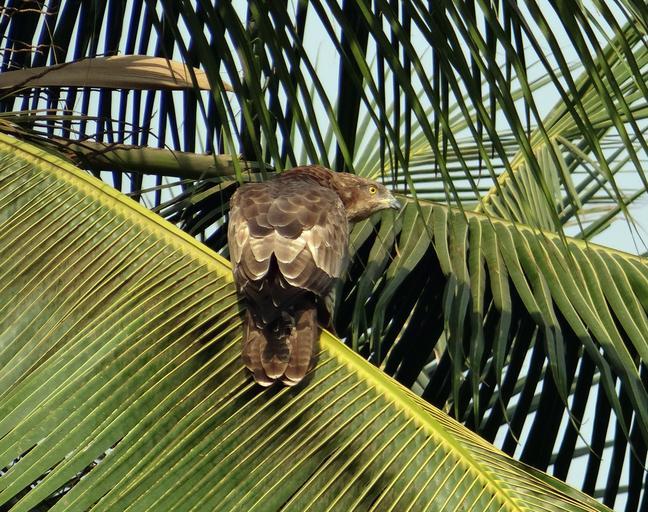 Keywords: black kite milvus migrans kite bird bird of prey accipitridae raptor hunter scavenger coconut tree dharwad india