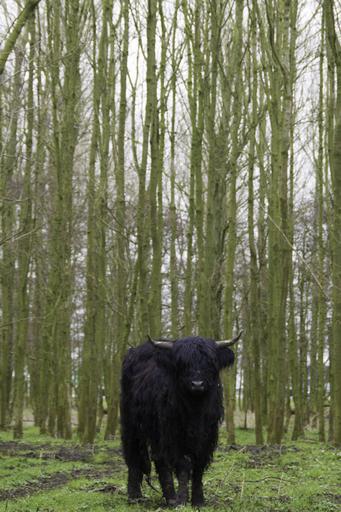 Keywords: black scottish highlander cow cattle forest scottish highlanders calf