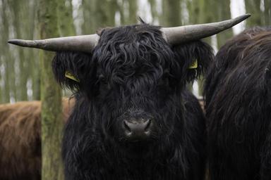 Keywords: black scottish highlander cow cattle forest scottish highlanders calf