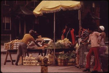 | Keywords: BLACK SIDEWALK SALESMEN ARRANGING THEIR FRESH FRUITS AND VEGETABLES ON CHICAGO'S SOUTH SIDE. MANY OF THE CITY'S BLACK... - NARA - 556211.tif Scope and content General notes 556211 Local identifier 412-DA-13759 Environmental Protection Agency 12/02/1970 - NARA-Author White John H 1945- Photographer 4002141 <br /> Chicago Cook county Illinois United States North and Central America inhabited place 4201352 41 85 -87 65 <br /> Still Picture Records Section Special Media Archives Services Division NWCS-S National Archives at College Park 8601 Adelphi Road College Park MD 20740-6001 06/1973 Record group Record Group 412 Records of the Environmental Protection Agency 1944 - 2006 Record group ARC 708 DOCUMERICA The Environmental Protection Agency's Program to Photographically Document Subjects of Environmental Concern compiled 1972 - 1977 Series ARC 542493 File unit File unit ARC Variant control numbers Agency-Assigned Identifier 230/19/013759<br /> NAIL Control Number NWDNS-412-DA-13759 yes Other versions <gallery> File BLACK_SIDEWALK_SALESMEN_ARRANGING_THEIR_FRESH_FRUITS_AND_VEGETABLES_ON_CHICAGO'S_SOUTH_SIDE _MANY_OF_THE_CITY'S_BLACK _-_NARA_-_556211 tif tif File BLACK_SIDEWALK_SALESMEN_ARRANGING_THEIR_FRESH_FRUITS_AND_VEGETABLES_ON_CHICAGO'S_SOUTH_SIDE _MANY_OF_THE_CITY'S_BLACK _-_NARA_-_556211 jpg jpg </gallery> NARA-cooperation PD-USGov NARA TIF images with categorized JPGs |