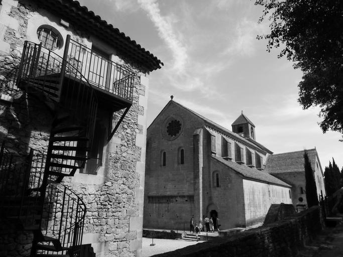 Keywords: black white abbey provence building