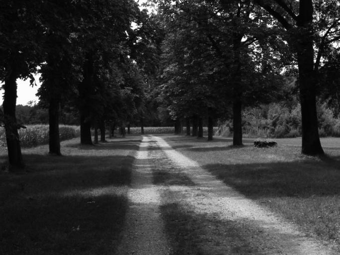 Keywords: black and white black and white photo wood avenue trees sun mood