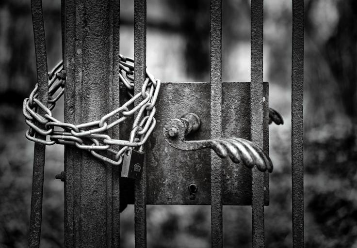 Keywords: black and white castle closed chain metal gate door handle goal metal