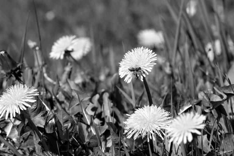 Keywords: black and white dandelion blossom bloom