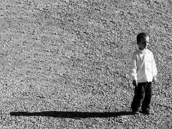 Keywords: black and white kid child boy portrait gravel shadow