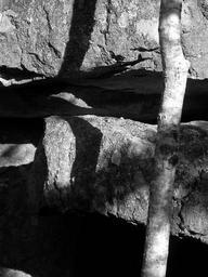 Keywords: black and white monochrome shadow stone rock tree light