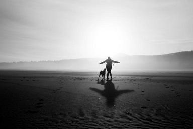 Keywords: black and white monochrome shadows dog person human pet