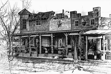 Keywords: black and white pencil drawing digital art artwork wooden building heritage old vintage antique grunge wild west house western style