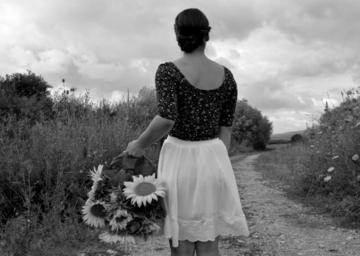 Keywords: black and white young woman flower summer flowers young girl beauty woman pretty sunflower
