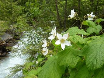 Keywords: blackberry blossom bloom wild flowers water running white mountain stream forest nature hiking