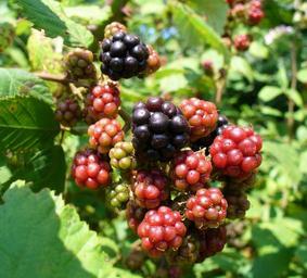 | Keywords: Blackberry fruits 2008 G2.jpg en Blackberries Rubus in a range of ripeness Possibly a garden hybrid cultivar Ukraine the Crimea ru Ежевика доз евающая и нез елая Возможно культиви уемый со т Ук аина К ым own George Chernilevsky 2008-07-23 44 35 53 91 N 33 26 18 03 E Blackberries on bushes |