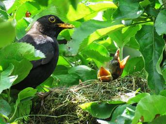 Keywords: blackbird nest bird's nest bird young bill young birds hunger feed food feeding