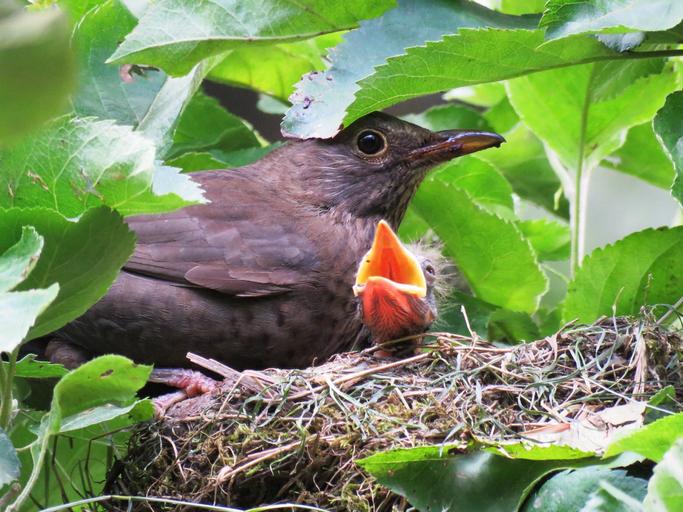 Keywords: blackbird nest young bird's nest bird young bill feed bird breeding