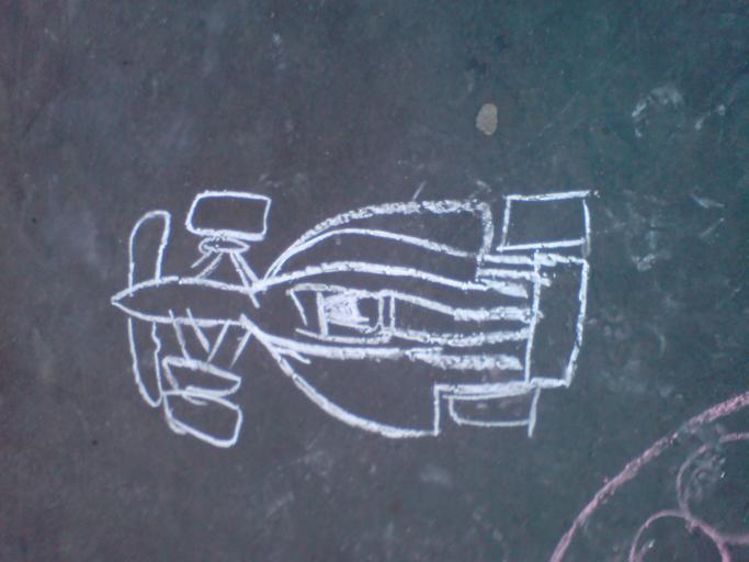 Keywords: blackboard black board crayon chalk whiting racing car drawing child school