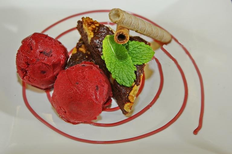 Keywords: blackcurrant sorbet ice cream dessert spearmint chocolate cake food dining refreshments comfort garnish sorbet