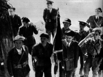 | Keywords: Blagoje Parović predaje zastavu bataljonu Dimitrov.jpg sh Zastava CK KPJ koju Blagoje Parović predaje komandantu bataljona Dimitrov 1937 Naši Španci zbornik fotografija i dokumenata o učešću jugoslovenskih dobrovoljaca u španskom ratu 1936-1939 Ljubljana 1961 author other versions Custom license marker 2016 07 03 PD-Yugoslavia Blagoje Parović Dimitrov Battalion Yugoslav volunteers in the Spanish Civil War | ||||