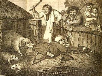 | Keywords: Blake for The Wit's Magazine - 1784.jpg and comment from M Dorothy George 'Catalogue of Political and Personal Satires in the British Museum' VI 1938 The parson dissatisfied at the young pig offered by 'Hodge' has entered the sty in order to choose the best of the litter One of many satires on tithes cf BMSat 6209 c Supplementary information This print illustrates verses that are printed in letterpress in the text of The Wit's Magazine pp 71-72 For William Blake's prints for The Wit's Magazine etched after designs by Thomas Stothard and Samuel Collings see 1872 1109 322-26 and J 7 6 Another impression of this print is in a scrapbook in the British Museum collection reg no 1979 1110 25 not yet catalogued on Merlin as of 12th July 2004 More BibliographyBM Satires 6737 bibliographic detailsEssick 1991 XVI 2 bibliographic details en Уильям Блейк Десятина нату ой или свиная месть г авю а по исунку Сэмюэла Коллингса для The Wit's Magazine Жу нала ост оумцев 1784 2014-07-10 09 35 29 w Morgan Library and Museum http //www themorgan org/collections/works/blake/work asp id onDisplay page 73 Creator William Blake PD-old-100 Uploaded with UploadWizard William Blake's engravings after Samuel Collings |