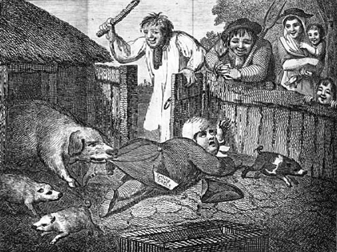 | Keywords: Blake for The Wit's Magazine - 1784 bw.jpg and comment from M Dorothy George 'Catalogue of Political and Personal Satires in the British Museum' VI 1938 The parson dissatisfied at the young pig offered by 'Hodge' has entered the sty in order to choose the best of the litter One of many satires on tithes cf BMSat 6209 c Supplementary information This print illustrates verses that are printed in letterpress in the text of The Wit's Magazine pp 71-72 For William Blake's prints for The Wit's Magazine etched after designs by Thomas Stothard and Samuel Collings see 1872 1109 322-26 and J 7 6 Another impression of this print is in a scrapbook in the British Museum collection reg no 1979 1110 25 not yet catalogued on Merlin as of 12th July 2004 More BibliographyBM Satires 6737 bibliographic detailsEssick 1991 XVI 2 bibliographic details en Уильям Блейк Десятина нату ой или свиная месть г авю а по исунку Сэмюэла Коллингса для The Wit's Magazine Жу нала ост оумцев 1784 2014-07-10 09 35 29 w Morgan Library and Museum http //www themorgan org/collections/works/blake/work asp id onDisplay page 73 Creator William Blake PD-old-100 Uploaded with UploadWizard William Blake's engravings after Samuel Collings |