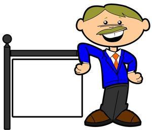 Keywords: blank business cartoon estate formal glad happy male man mustache placard post professional property real sale sign smile suit tie vector