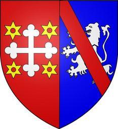 | Keywords: Blason de la famille Gillet de Chalonge.svg parti au premier de gueules à la croix alésée tréflée d'argent cantonnée de quatre molettes d'éperon d'or au second d'azur au lion d'argent et à la bande cousue de gueules brochant sur le tout moi et inkscape Nicolas C 2009-06-01 SVG coats of arms of families of France |