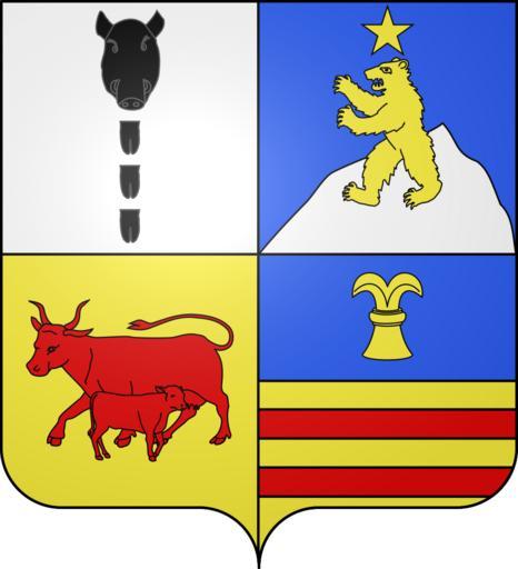 Keywords: Blason de la ville d'Argelès-Gazost (Hautes-Pyrénées).svg blazon of en the city of Argelès-Gazost France Argelès-Gazost Hautes-Pyrénées France Argelès-Gazost Hautes-Pyrénées fr Ecartelé au premier d'argent à la hure de sanglier en rencontre de sable défendue aussi d'argent soutenue de trois pieds aussi de sanglier de sable de front rangés en pal au deuxième d'azur à l'ours en pied d'or descendant d'une montagne d'argent surmontée d'une étoile aussi d'or au troisième d'or à la vache de gueules allaitant son veau contourné du même au quatrième coupé au I d'azur au roc d'échiquier d'or et au II d'or aux deux fasces de gueules spax89 Projet Blasons Own spax89 v -Blasons other versions Argelès-Gazost Cows in heraldry Boar heads in heraldry Bears in heraldry 1 five rays Or in heraldry Chess in heraldry Coats of arms of cities in Hautes-Pyrénées SVG coats of arms of France DEFAULTSORT Argeles-Gazost |