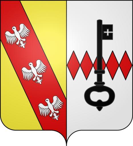 Keywords: Blason de la ville de Flétrange (Moselle).svg blazon of en city of Flétrange Flétrange Moselle Flétrange fr Parti au premier d'or à la bande de gueules chargée de trois alérions d'argent au second d'argent à la fasce fuselée de cinq pièces de gueules à la clef de sable en pal brochant sur le tout spax89 Projet Blasons Own spax89 v -Blasons other versions Flétrange Alerions in heraldry Coats of arms of cities in Moselle SVG coats of arms of France Derivatives of the Coat of arms of Lorraine 1 key sable in heraldry DEFAULTSORT Flétrange |