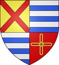 | Keywords: Blason de la ville de Niederentzen (68).svg blazon of en city of Niederentzen Niederentzen Haut-Rhin Niederentzen fr Ecartelé au 1er d'or au sautoir de gueules au 2nd et au 3ème lascé d'argent et d'azur de six pièces au 4ème de gueules à quatre maillons de chaîne d'or en forme de croix retenus au centre par un cercle de même spax89 Projet Blasons Own spax89 v -Blasons other versions Other version Blason niederentzen jpg 100px Niederentzen Coats of arms of cities in Haut-Rhin SVG coats of arms of France DEFAULTSORT Niederentzen |