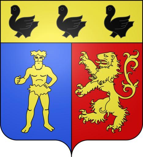 Keywords: Blason de la ville de Malain (21).svg blazon of en city of Malain Malain Côte-d'Or Malain Côte-d'Or fr Parti au premier d'azur au sauvage d'or au second de gueules au lion d'or; le tout sommé d'un chef d'or chargé de trois merlettes de sable it partito nel 1º d'azzurro al selvaggio d'oro; nel 2º di rosso al leone d'oro; il tutto cimato da un capo d'oro caricato di tre merlotti di nero spax89 Projet Blasons Own spax89 v -Blasons other versions Mâlain Blason 3 martlets in heraldry Men in heraldry Coats of arms of cities in Côte-d'Or SVG coats of arms of France DEFAULTSORT Malain |