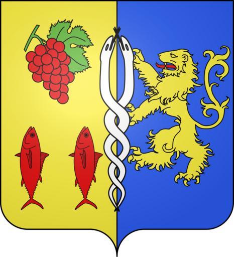 | Keywords: Blason de la ville du Grau-du-Roi (30).svg blazon of en city of Le Grau-du-Roi Le Grau-du-Roi Gard Le Grau-du-Roi Gard fr Parti au premier d'or aux deux thons de gueules posés en pal et rangés en fasce en pointe surmontés d'une grappe de raisin du même feuillée de sinople au second d'azur au lion d'or lampassé de gueules ; aux deux bisses d'argent entrelacées brochant en pal sur le tout it partito nel 1º d'oro a due tonni di rosso nella punta posti in palo e ordinati in fascia sormontati da un grappolo d'uva dello stesso fogliato di verde; nel 2º d'azzurro al leone d'oro lampassato di rosso; a due biscie d'argento intrecciate e attraversanti in palo sul tutto spax89 Projet Blasons Own spax89 v -Blasons other versions Le Grau-du-Roi Blason Tunas in heraldry Coats of arms of cities in Gard SVG coats of arms of France DEFAULTSORT Grau-du-Roi Le |