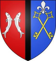 | Keywords: Blason ville fr Etouvans (Doubs).svg fr Blason de la ville d'Etouvans Doubs parti; au premier de gueules à deux bars adossés d'argent au deuxième d'azur à deux clefs d'or en sautoir accompagnées en chef d'une fleur de lys aussi d'argent au pal diminué de sable brochant sur la partition own Syryatsu 12-07-2008 DEFAULTSORT Etouvans Coats of arms of cities in Doubs Barbels in heraldry Keys saltirewise in heraldry Étouvans Blason | ||||