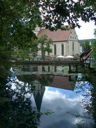 Keywords: blautopf mirroring water blaubeuren monastery church steeple