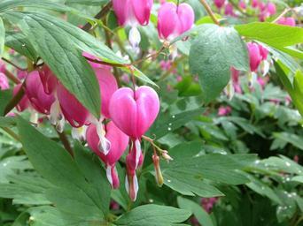 Keywords: bleeding hearts flowers hearts nature pink garden plant spring green love floral hanging leaf valentine bloom blossom
