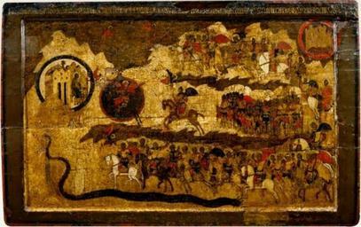 | Keywords: Blessed is the Host of the King of Heaven from Chudov Monastery.jpg Икона Благословенно воинство ебесного Ца я П оисходит из усыпальницы великого князя Се гея Александ овича в Чудовом монасты е осковского К емля http //www svyatayarus ru/data/icons/152_voinstvo_nebesnogo_tsara/538_exhfoto1_03 jpg XVI c anonimus PD-Art Blessed is the Host of the King of Heaven Z Chudov Monastery Exhibition Sainte Russie Moscow 2011 - icons | ||||