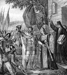Keywords: Blessing Dmitry Ivanovich.jpeg Under Sergius' Blessing Dmitry Ivanovich Adding Monks Peresvet and Oslyabya to his Forces Се гий Радонежский благословляет Дмит ия Ивановича и посылает монахов Ослябю и Пе есвета на помощь в битве http //www stormfront org/forum/showthread php/russian-civilization-379706p12 html creator Boris Chorikov PD-old-100 Boris Chorikov Battle of Kulikovo Dmitry Donskoy in history paintings Sergius of Radonezh in history paintings Location of museum or gallery missing |