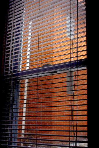 Keywords: blinds window home brick outside shade texture horizontal indoors frame building interior light