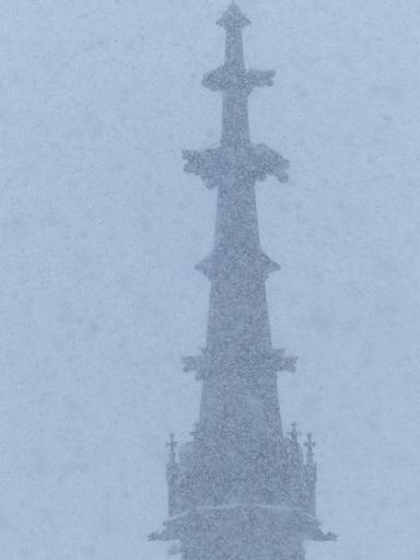 Keywords: blizzard snow flurry snowflakes snowfall snow storms winter cold snow flake forward wind icy steeple spire münster ulm cathedral
