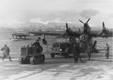 | Keywords: Blohm&Voss BV 138 and Heinkel He 115 at Kirkenes c1943.jpg Crews pull a German Blohm Voss BV 138C seaplane from the water at at Kirkenes Norway during World War II In the left background is a Heinkel He 115 float plane from Küstenfliegergruppe 406 coded K6+EH Official U S Navy photo http //www history navy mil/our-collections/photography/numerical-list-of-images/nhhc-series/nh-series/NH-45000/NH-45564 html NH 45564 from the U S Navy http //www history navy mil Naval History and Heritage Command ca 1943 U S Navy PD-USGov PD-old Blohm Voss BV 138 Heinkel He 115 Norway in World War II Kirkenes Airport Høybuktmoen |