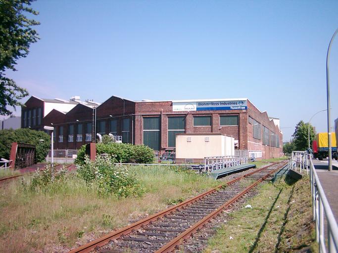 | Keywords: Blohm+ Voss Hallen 005.jpg Blohm + Voss Hamburg-Steinwerder Im Vordergrund ein Gleis der Hamburger Hafenbahn- Blohm + Voss Hamburg Germany self-photographed 2007-05 GeorgHH Own work all rights released Public domain Blohm + Voss Betriebsgebäude Hamburger Hafenbahn Blohm+Voss |