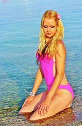 Keywords: blonde girl sea pink bathing suit beauty sexy