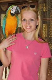Keywords: blonde woman parrot macaw love